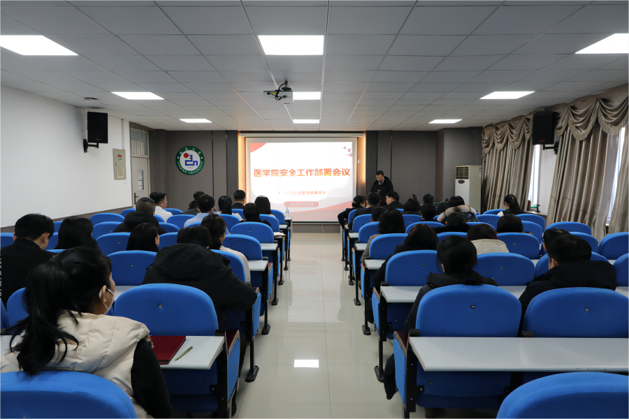刘延祥指出,2023 年学院始终坚持“人民至上、生命至上”“生命重于泰山”,安全工作形势总体平稳,未发生较大及以上生产安全事故,为学院发展营造了安全稳定的环境。他强调,安全生产和应急管理工作事关师生生命财产安全,事关学院发展大局,我们要以实干担当诠释为民情怀,以实际行动守住发展底线,树牢底线思维,坚决扛起平安校园的政治责任,聚焦目标任务,全面抓牢安全生产重点工作,强化担当作为,压紧压实安全生产工作责任,切实做好校园岁末年初暨“两节”及寒假期间的学院安全管理,杜绝安全事故发生,确保安全稳定,为广大师生营造一个快乐、祥和、文明、安全的节日和假期,努力为加快新医科建设营造更加安全的发展环境。