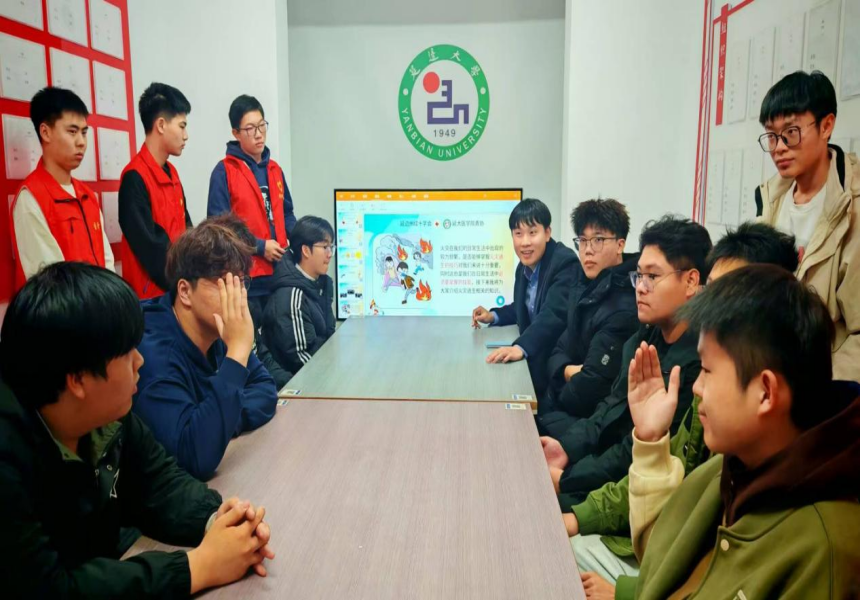 于16号楼“一站式”学生社区党团活动室开展寝室消防安全培训,活动由少妇出轨